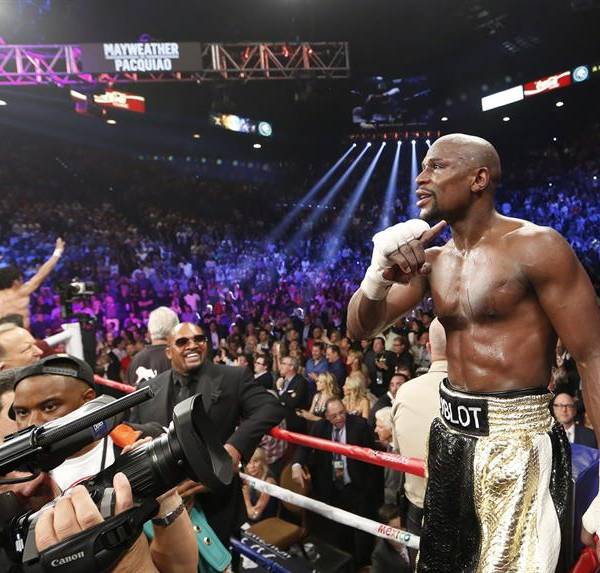 Mayweather Jr. derrotó a Pacquiao por decisión unánime tras 12 asaltos, en combate disputado en Las Vegas, para defender sus cinturones de peso welter y superwelter del CMB y dejar su palmarés en 48-0, con 26 antes del límite.