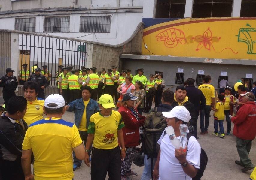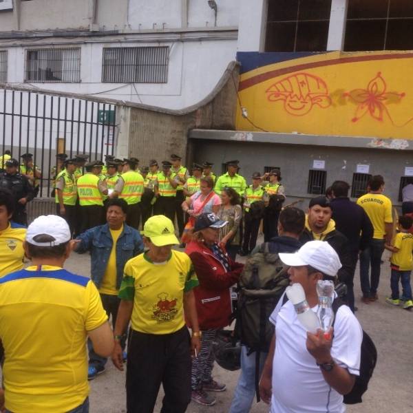 QUITO, Ecuador.- Aficionados en los exteriores del Atahualpa. Foto: Alejandro Bellolio.