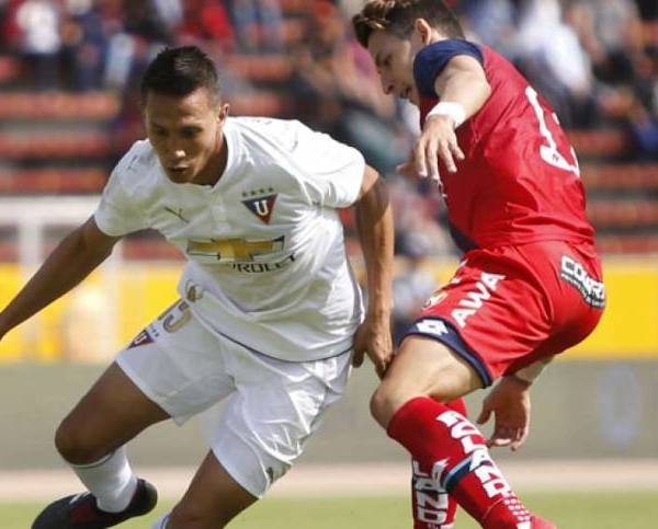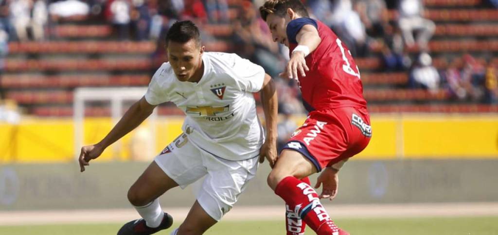 El defensa ecuatoriano de LDUQ, Franklin Guerra, sufrió un fuerte golpe en la nariz.