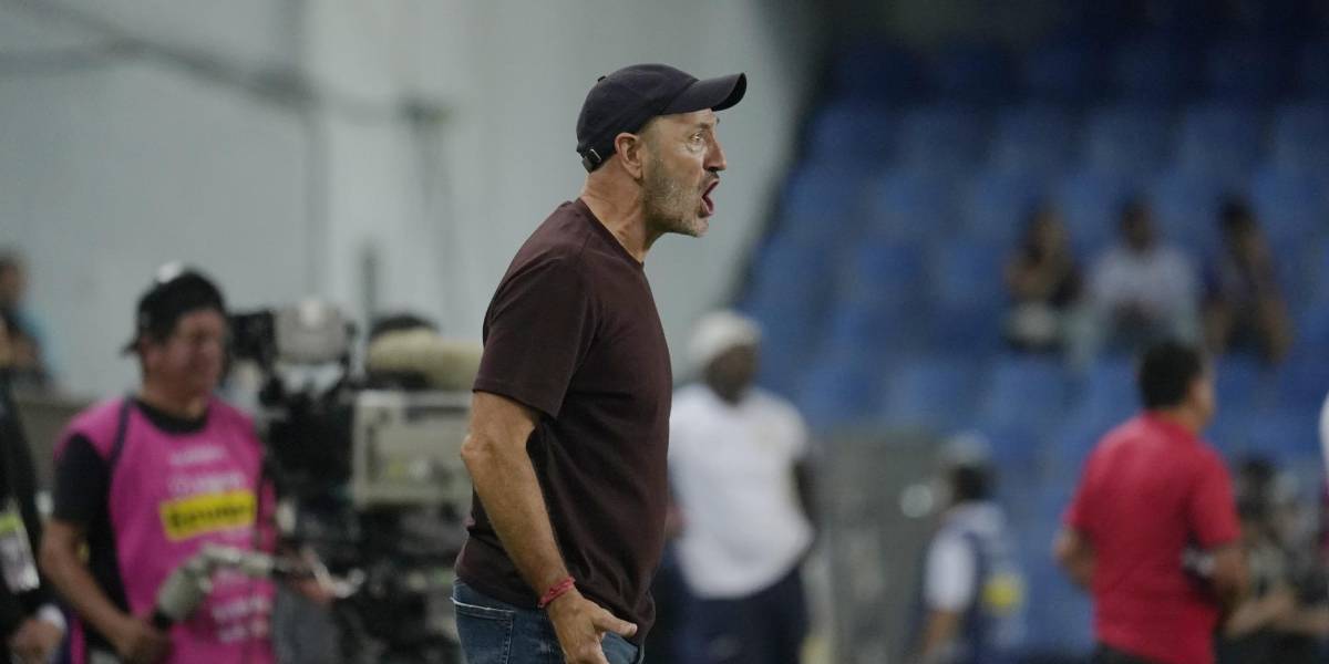 El entrenador de Emelec, Guillermo Duró, en el partido ante El Nacional por la novena fecha de la LigaPro( )