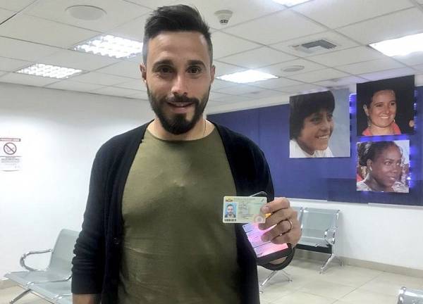 @HernanGali12 recibiendo su cédula de identidad ecuatoriana en el registro civil de Quito. 💙⚽🚆