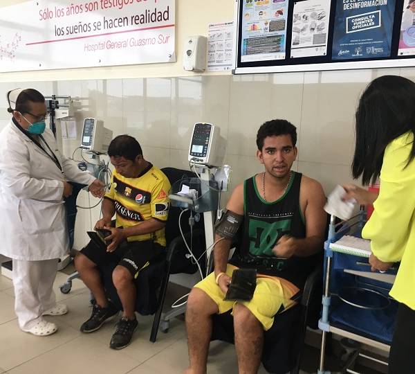 Hinchas reciben asistencia en Ecuador. Foto: Cancillería de Ecuador.