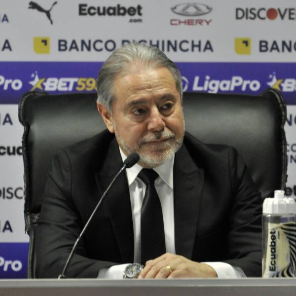 Presidente de Liga de Quito, Isaac Álvarez, en rueda de prensa( )