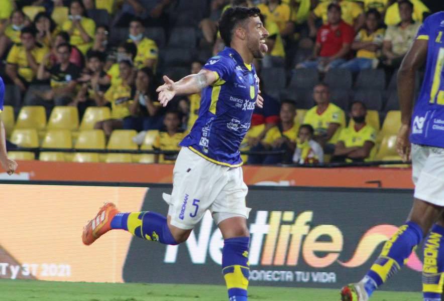 Joaquín Vergés festeja el tanto con el que Gualaceo SC venció a Barcelona SC en condición de visita, en el primer semestre del 2022.( )