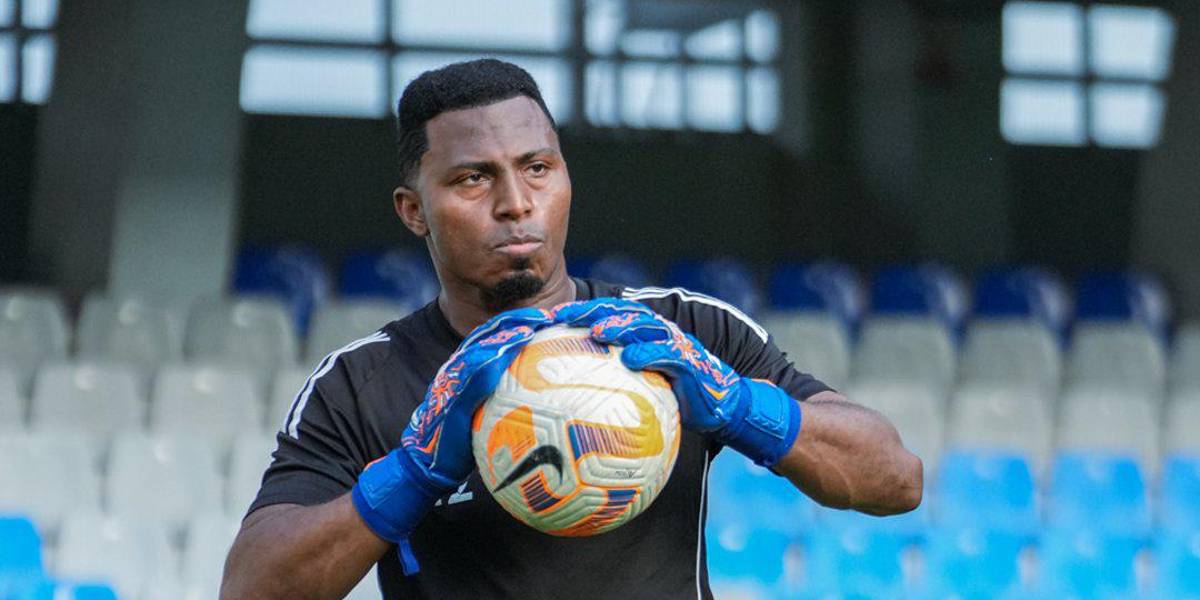Portero de Emelec, Pedro Ortiz, en un entrenamiento ( )
