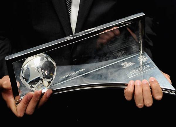 El trofeo de plata del premio Puskas, otorgado por la FIFA.
