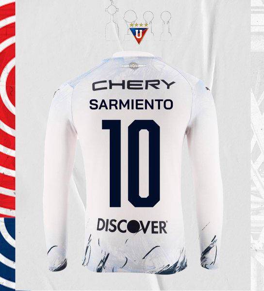 Camiseta de Liga de Quito con el número 10 y el apellido del jugador ecuatoriano Sarmiento( )