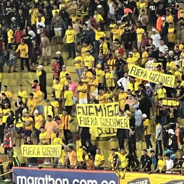 Esas fueron las banderas de los hinchas de Barcelona SC contra el ministro del Deporte, Andrés Guschmer.( )