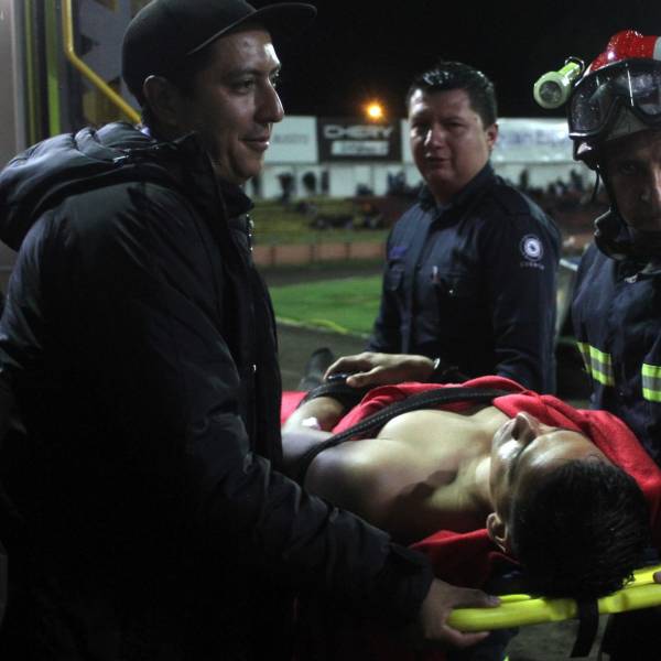 El árbitro Robert Cabrera sufrió un duro golpe en el partido entre el Deportivo Cuenca y El Nacional, que le hizo salir del campo de juego en camilla. Luego fue trasladado en ambulancia a una casa de salud cercana para que le hagan los respectivos estudios.