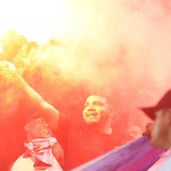 Hincha de Emelec con la bengala encendida en su mano. ( )