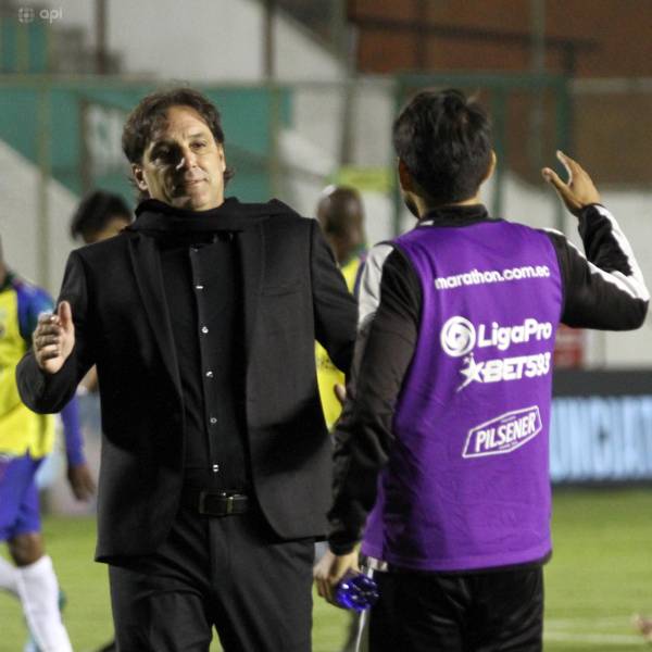 Fabián Frías, entrenador de Gualaceo, criticó a Lucas Mancinelli en el empate 1-1 contra Deportivo Cuenca por Liga Pro.( )