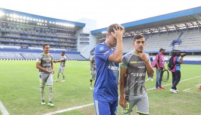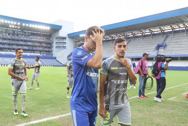 Jugadores de Emelec y Deportivo Cuenca no pudieron jugar su duelo el domingo pasado por falta de árbitros.( )