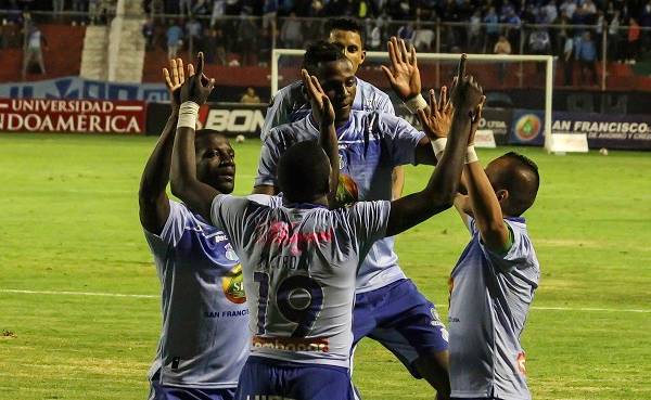 Jugadores de Macará celebrando uno de los goles. Foto: API.