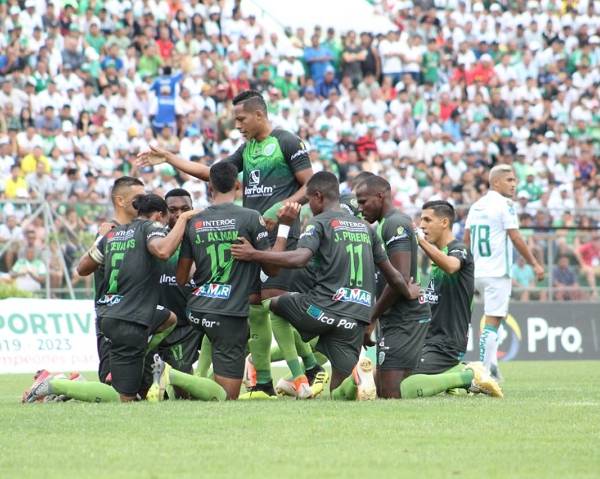 Jugadores de Orense celebran uno de los goles. Foto: Twitter Orense.