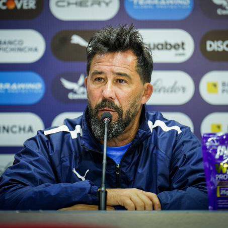 El entrenador de Liga de Quito, Pablo Sánchez, en rueda de prensa( )