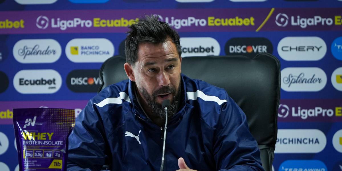 El director técnico de Liga de Quito, Pablo Sánchez, en rueda de prensa ( )