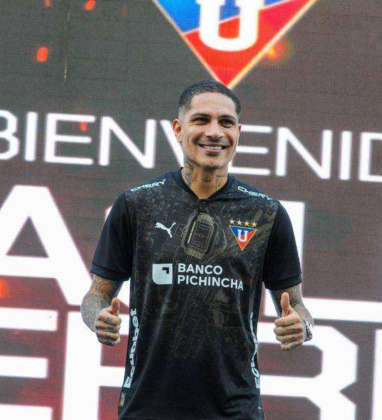 Paolo Guerrero posa con la nueva camiseta de Liga de Quito( )