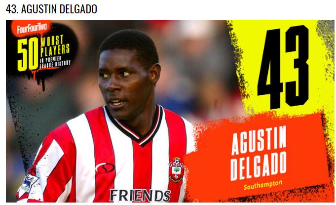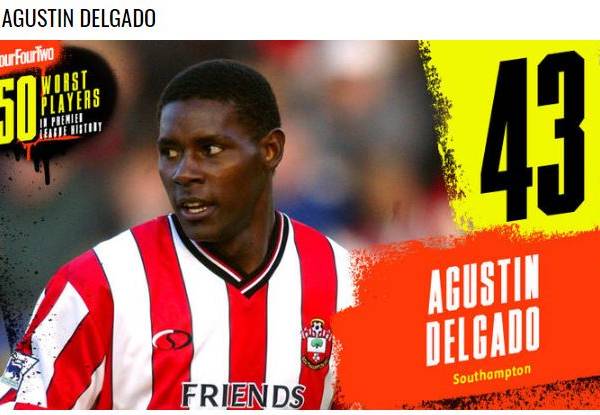 La reconocida revista de fútbol, Four Four Two, publicó la lista de los 50 peores jugadores en la historia de la Premier League. Entre ellos, aparece Agustín Delgado, histórico delantero ecuatoriano.