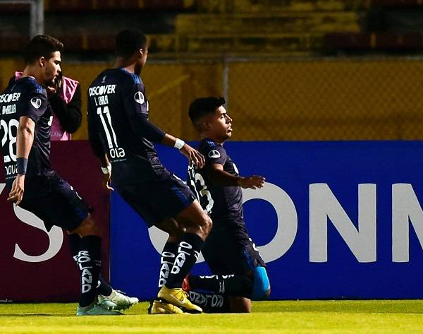 Vides celebra un tanto en Copa Sudamericana. Foto: Twitter U. Católica.