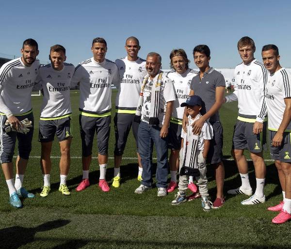 "El padre de esta familia siria, que fue zancadilleada por una periodista húngara, y sus hijos saludaron a (Rafael) Benítez, al cuerpo técnico y a la plantilla minutos antes de la última sesión previa al partido ante el Granada. El pequeño Zied conoció así a su ídolo, Cristiano Ronaldo", señaló el Real Madrid en su página web, donde publicó imágenes del encuentro, en el que el pequeño Zied viste la equipación del equipo diez veces campeón de Europa.