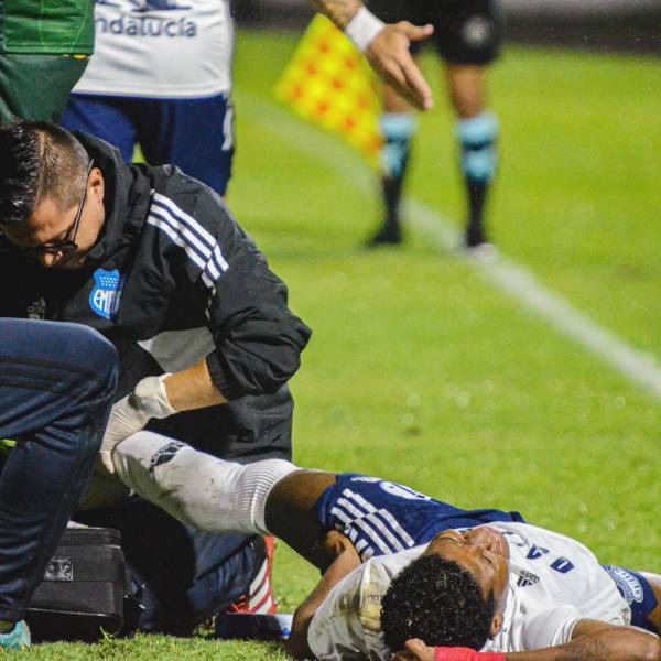 En una disputa por la pelota el lateral izquierdo de Emelec se llevó la peor parte al sufrir una luxofractura de tobillo.