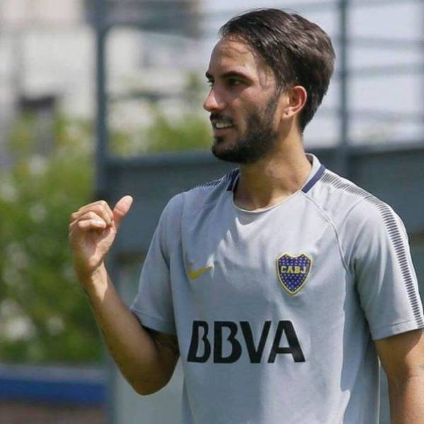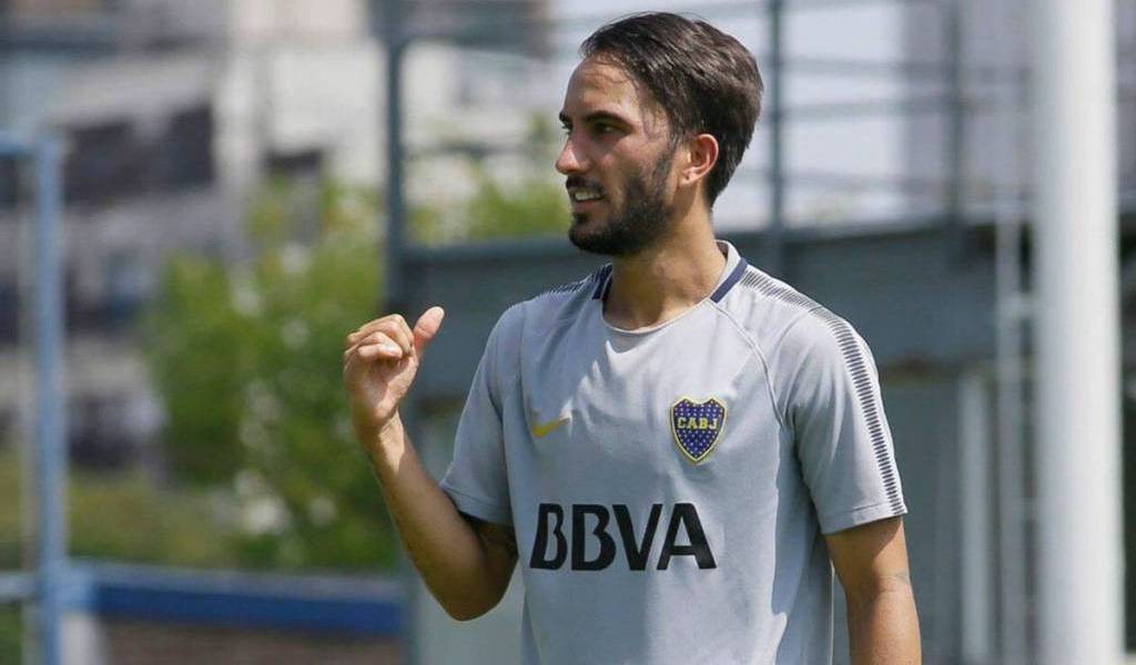 Sebastián Pérez, en un entrenamiento de Boca Juniors