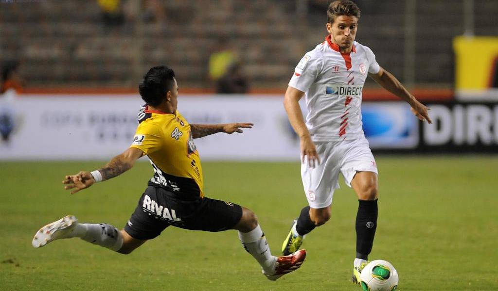 Sevilla sacó provecho de un error defensivo entre el portero Lanza y el centrocampista Caicedo, que terminó con un tiro libre indirecto, con remate preciso de Pareja para anotar el empate, al minuto 71.