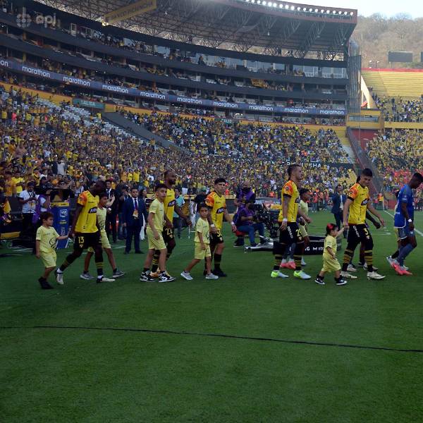 Jugadores de Barcelona SC y Emelec ingresan al campo de jugeo en el estadio Monumental ( )