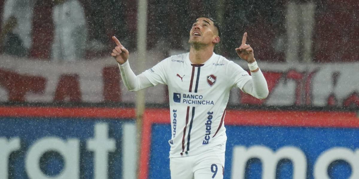 El delantero de Liga de Quito, Lisandro Alzugaray, celebra su gol contra Independiente del Valle por la LigaPro( )