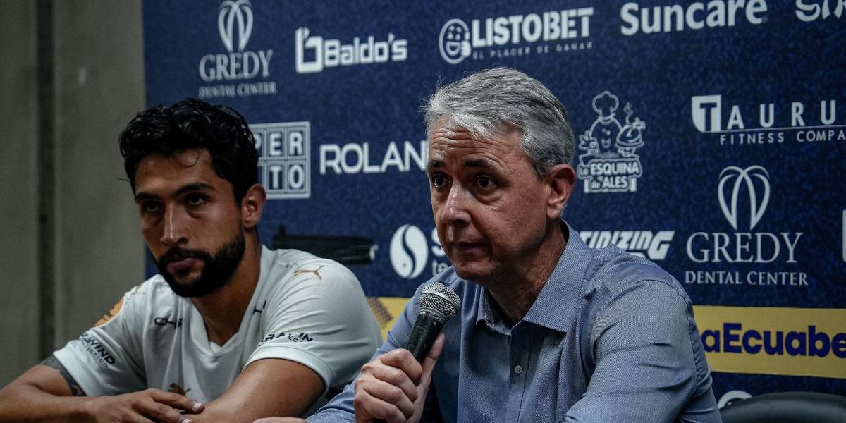 El entrenador de Liga de Quito, Tiago Nunes, en rueda de prensa( )