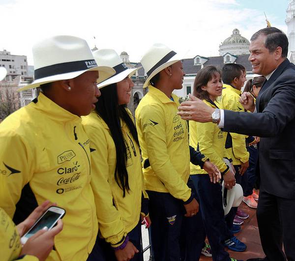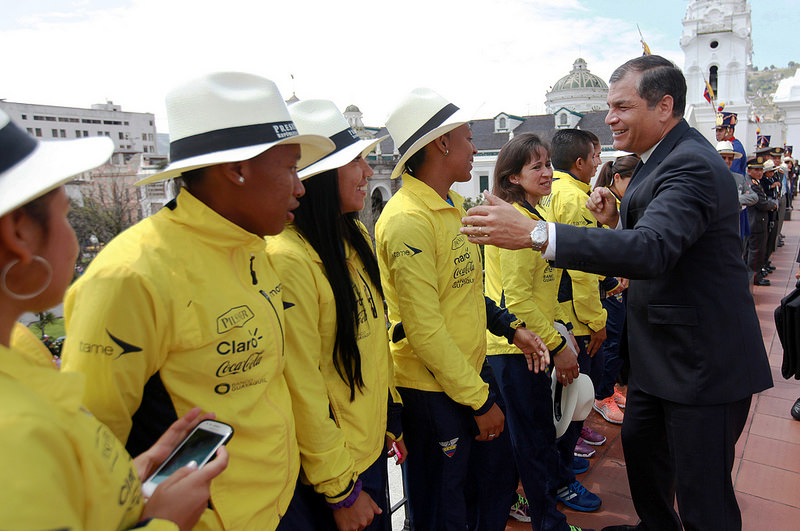 Las seleccionadas de fútbol femenino asistieron este lunes a una invitación en el palacio de Carondelet para compartir un almuerzo con el presidente de la República, Rafael Correa.