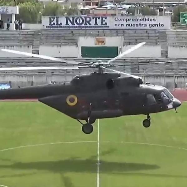 Este martes 4 de julio ocurrió un hecho inusual en medio de un partido del ascenso del fútbol ecuatoriano. Un helicóptero aterrizó en el estadio Olímpico de la Ciudad de Ibarra, mientras se estaba llevando a cabo el cotejo entre Independiente Ibarra y La Cantera FC.