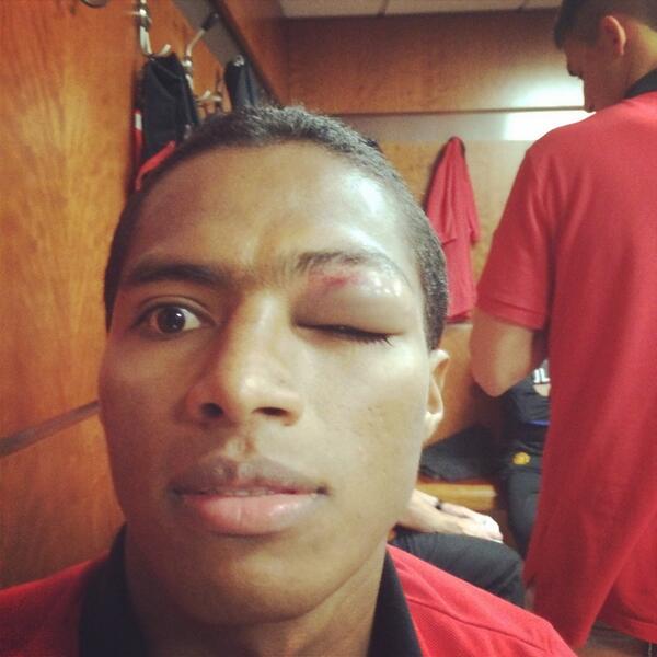 El rápido volante ecuatoriano Antonio Valencia publicó en su cuenta de Twitter una foto de su golpe en la ceja derecha que ocurrió en el partido de hoy de Champions League frente al Olympiacos de Grecia.