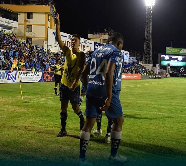 Jugadores de Macará celebran un tanto del equipo. Foto: Twitter Macará.