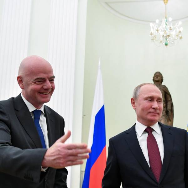 El presidente de la FIFA, Gianni Infantino (i), con el presidente ruso, Vladimir Putin (d), en el Kremlin en Moscú (Rusia). ( )