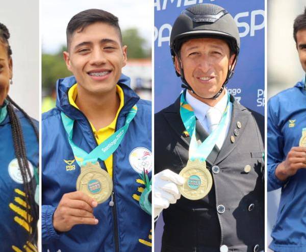 Las 7 medallas doradas fueron conseguidas gracias a: Angie Palacios (halterofilia), Julio Mendoza (ecuestre), David Hurtado (marcha), Jhonatan Narváez (ciclismo), Lucía Yépez (lucha), Glenda Morejón junto a Daniel Pintado (marcha por relevos) y José Acevedo (Karate).