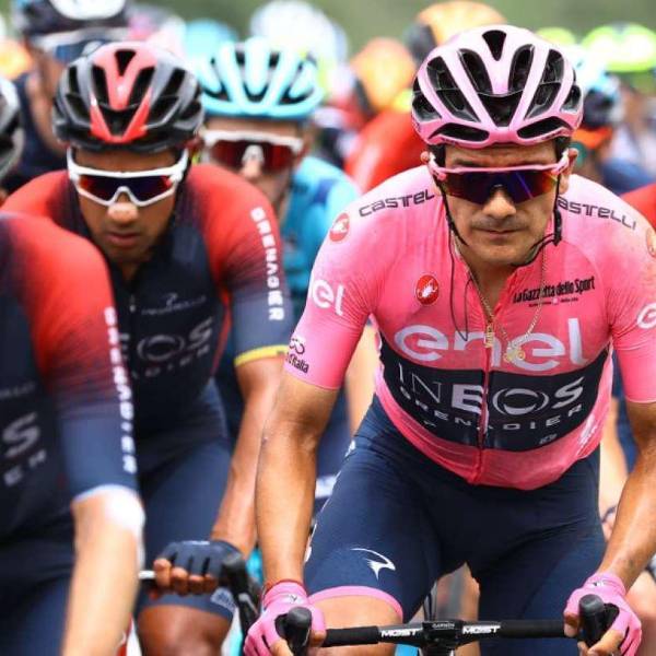 Richard Carapaz (Ineos) defenderá la maglia rosa ante sus rivales más directos, Jai Hindley y Mikel Landa. Aventaja en 3 segundos al australiano y en 1.05 minutos al español. EFE