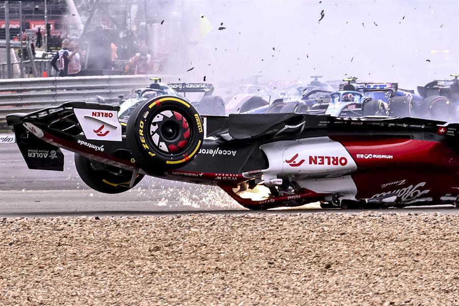 El Gran Premio de Gran Bretaña inició con un violento accidente entre el inglés George Russell (Mercedes) y el chino Guanyu Zhou (Alfa Romeo).