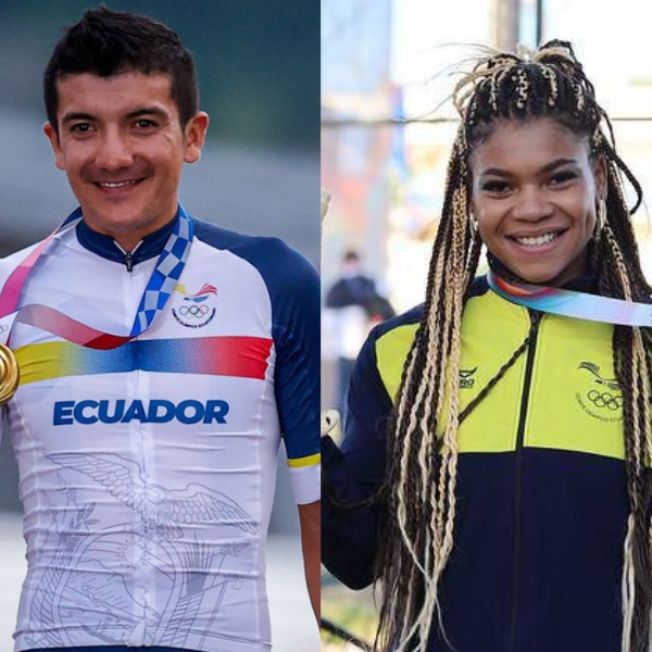 Richard Carapaz (i), Angie Palacios (c) y Daniel Pintado (d) son los favoritos de Ecuador para conseguir medalla.( )