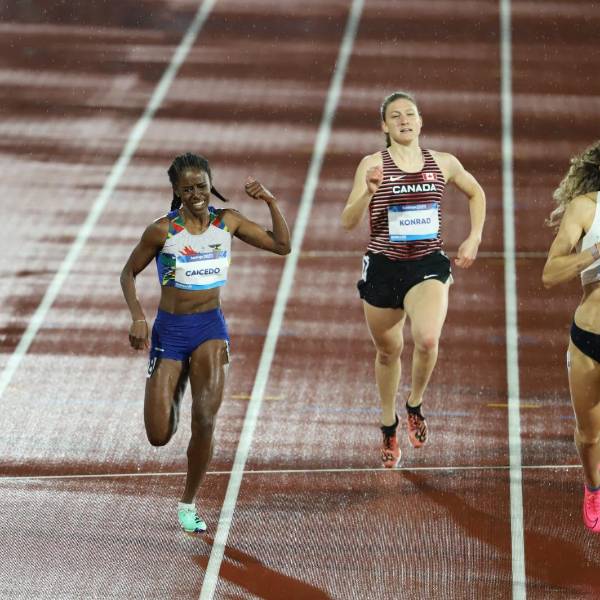 Caicedo registró un tiempo de 51,76 segundos, quedando atrás de la chilena Martina Weil, mientras que la colombiana, Evelis Jazmin Aguilar se llevó la de bronce.