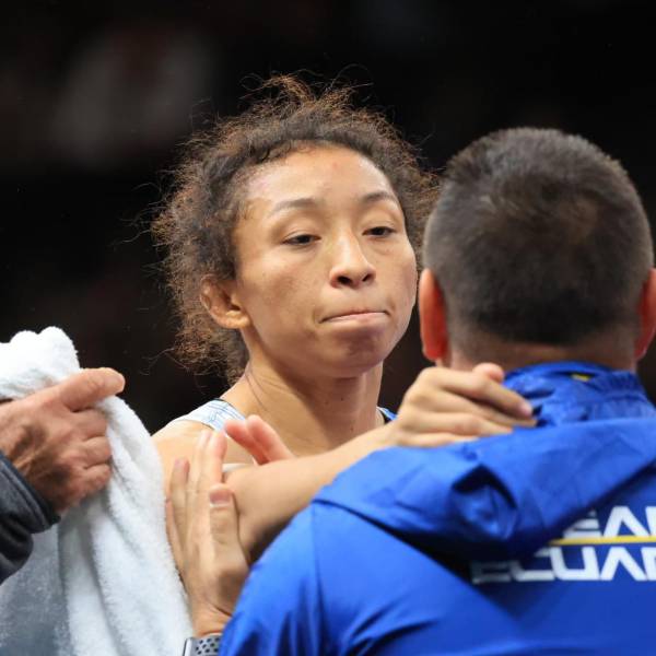 Así se vivió desde la lona la final de los 50 kg de la lucha libre femenina donde Jacqueline Mollocana se quedó con la medalla de plata tras caer 5-2 ante Yusneylis Guzmán 🇨🇺#TeamEcuador🇪🇨#Santiago2023 pic.twitter.com/wIyuN6s1RI