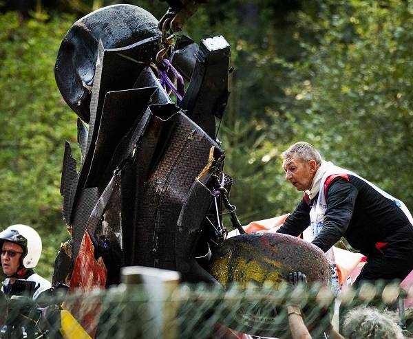 El piloto francés Anthoinhe Hubert pegó contra las barreras de contención a la salida de Eau Rouge y recibió un golpe lateral del auto del estadounidense-ecuatoriano de 20 años de edad, Juan Manuel Correa, quien corre para el Charouz Racing System.