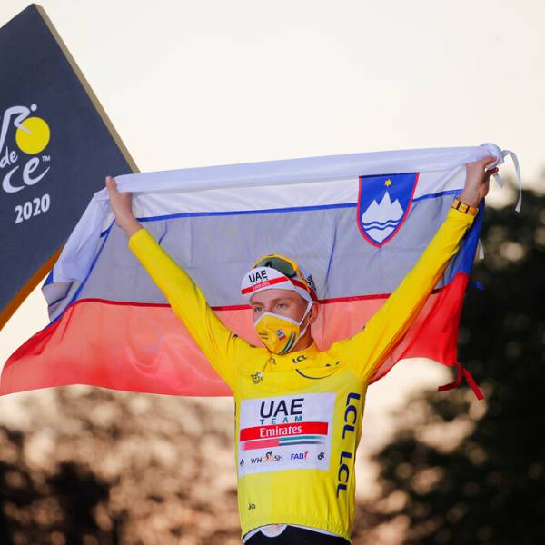 Portando una máscara amarilla para combinar con el maillot amarillo de ganador, Pogacar subió a lo más alto del podio con el atardecer de fondo. Se transformó de un prodigio prometedor en una superestrella del ciclismo, el ganador más joven desde la Segunda Guera Mundial y el primero proveniente de Eslovenia. Aunque la máscara escondió su sonrisa, las arrugas en los ojos revelaron su sonrisa.