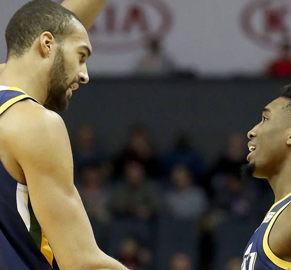 Rudy Gobert y Donovan Mitchell, jugadores de los Jazz. FOTO: AFP
