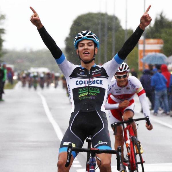 El corredor italiano le da la segunda victoria a su equipo en esta 'Corsa Rosa' al imponerse en un sprint( )