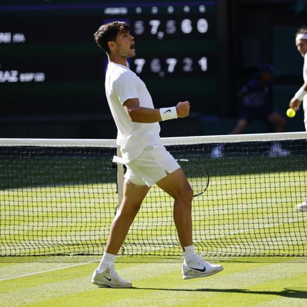 Con un calor inusual en Londres, la presión de ser el máximo favorito y un tenista sin nada que perder. Un mezcla explosiva para una primera ronda de Wimbledon que Carlos Alcaraz solventó con dificultad tres sets a dos (7-5, 6-7 (5), 7-5, 2-6 y 6-1).