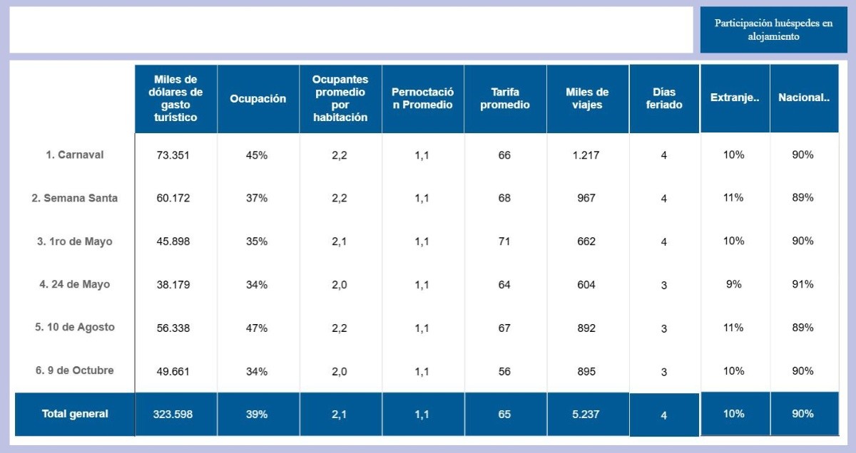Por ejemplo, durante todos los feriados nacionales del 2018 y 2019 hubo un 14 % y 15 %, respectivamente, de ocupación hotelera por parte de turistas extranjeros. Pero ese porcentaje cayó en los años venideros. En 2023 fue del 12 % y en 2024 del 9 %. En lo que va del 2025 es del 10 %.