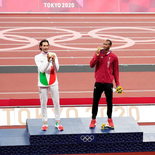 La relación de estos dos atletas viene desde muchos años atrás. Antes de viajar a los juegos de Río 2016, Tamberi se rompió el talón de Aquiles y le dijeron que quizás no volvería a competir. Su yeso se firmó con una promesa "TOKIO 2020" luego se le sumó +1.