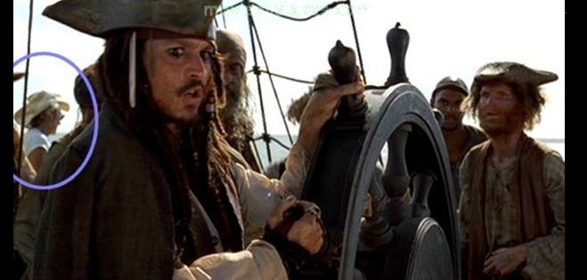- La saga de “Los piratas del Caribe”, una de las más populares de los últimos años, también hace su aporte a los errores del cine. En este caso con un despistado miembro del staff que incluso carga gafas.
