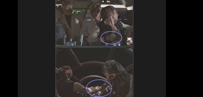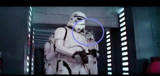 - “La Guerra de las Galaxias” es una de las grandes películas de la historia del cine, pero eso no la salva de tener algunos detalles. Primero está el Stormtrooper que va a chocar con la puerta, y en segundo lugar el guante de Han Solo que aparece y desaparece.
